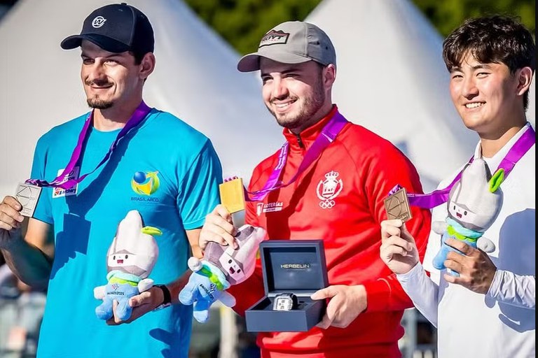 CAMINHO – Para chegar até a decisão do torneio na Coreia do Sul, Marcus D’Almeida teve duelos difíceis e simbólicos. O principal deles foi na terceira rodada, quando superou o sul-coreano Kim Woo-Jin, atual campeão olímpico, responsável pela eliminação precoce do brasileiro nos Jogos de Paris, em 2024, e que atuava em casa. “Foi um combate lindo, de altíssimo nível. Na última série, eu precisava de pontuação perfeita. E sim, eu consegui”, celebrou o brasileiro, que havia perdido para Woo-Jin também na final do Mundial de 2021. Na trajetória para chegar à decisão, D’Almeida também deixou para trás adversários de Áustria, Grã-Bretanha, Holanda, Canadá e Itália.