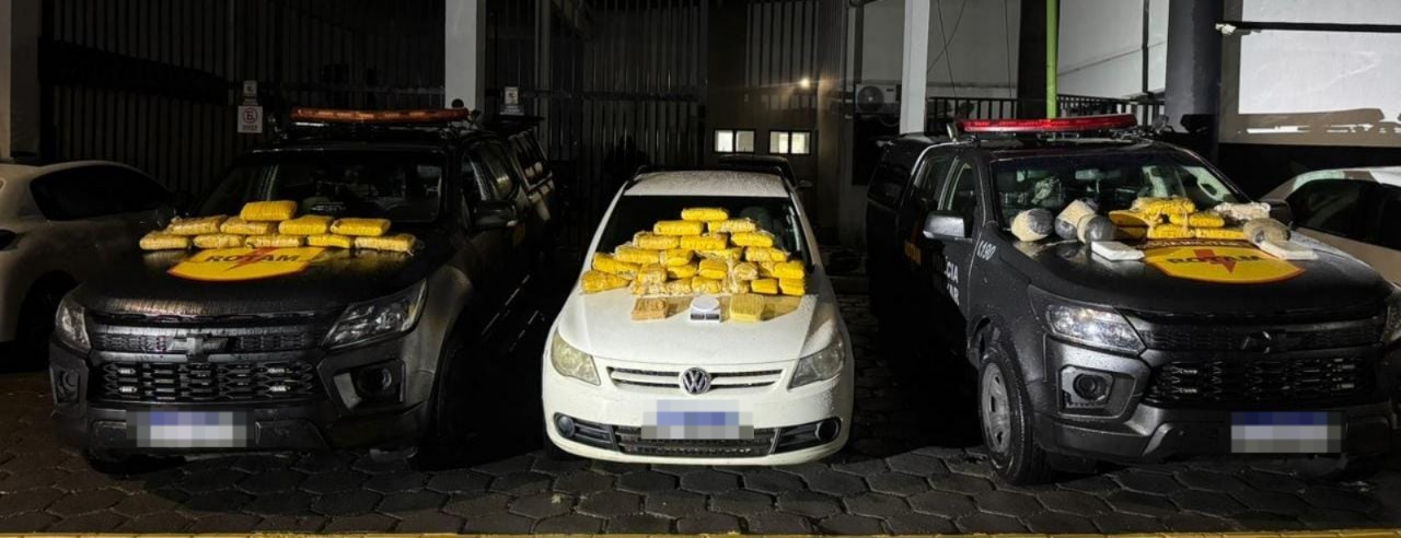 Na sequência da operação, os policiais da Rotam identificaram ainda um caminhão que armazenava o restante dos entorpecentes. Ao todo, foram apreendidos 30 quilos de drogas e a ação resultou na prisão em flagrante dos motoristas que conduziam a Saveiro e o caminhão.